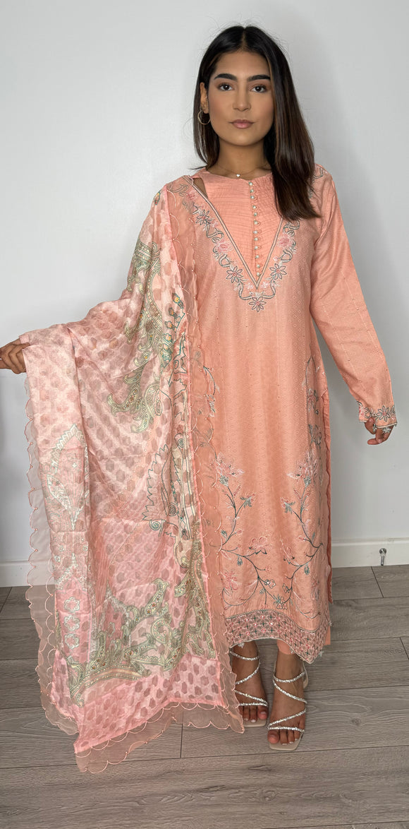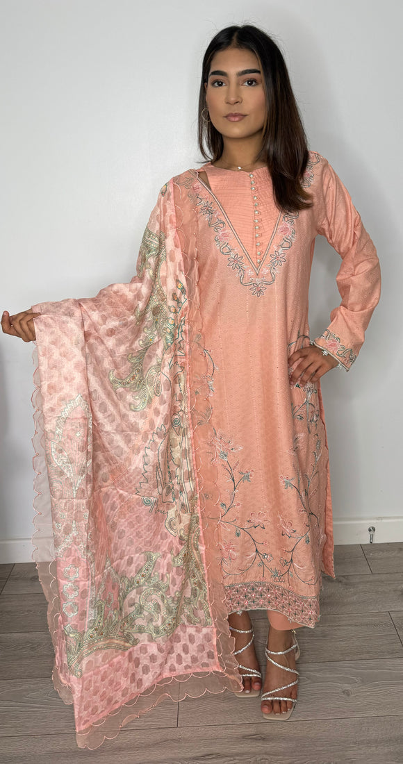Haniya Luxury Chickan Kari Lawn Collection - Dusty Pink
