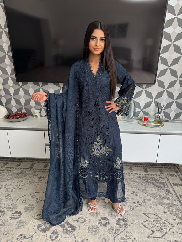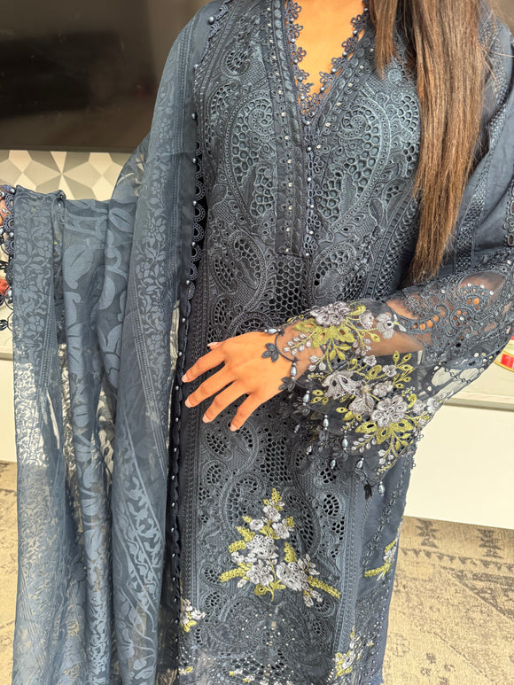 Haniya Luxury Chickan Kari Lawn Collection - Cloud Blue