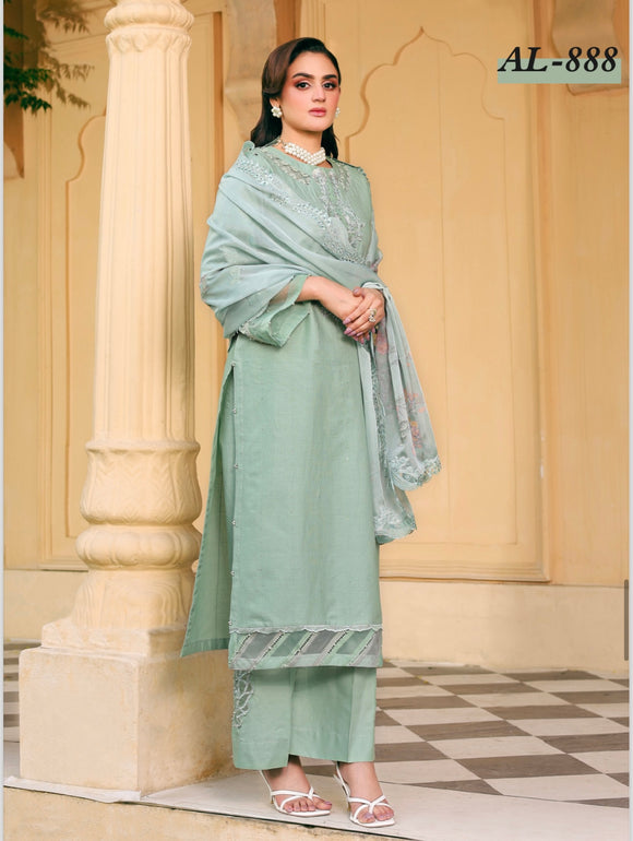 3 Pc Printed Eid Collection - Design 2 - Tan