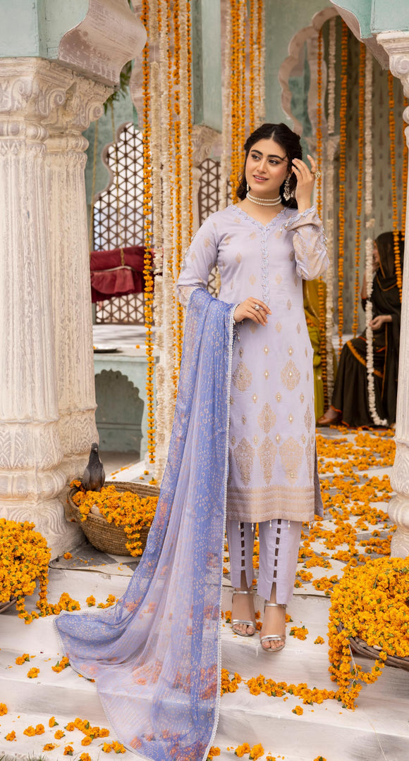 Chunari Lawn Collection 3 Pc Suit - Pastel Grey/Lilac