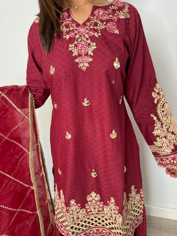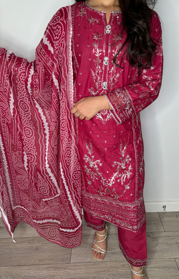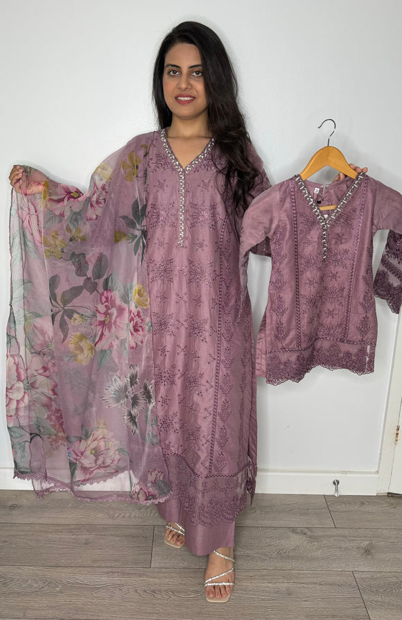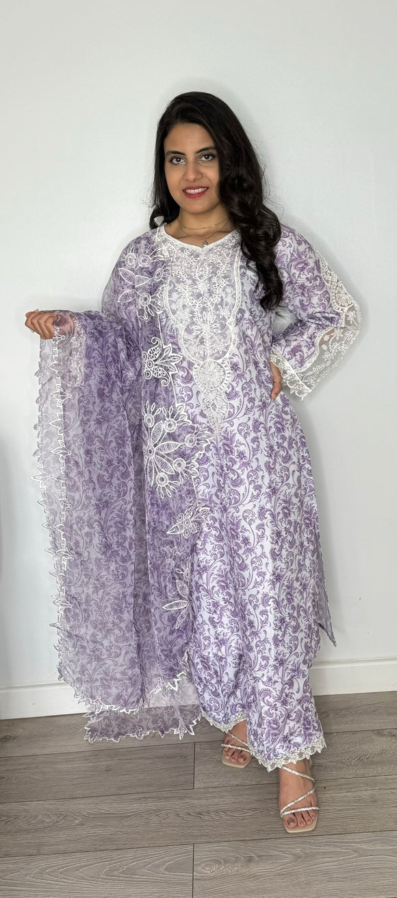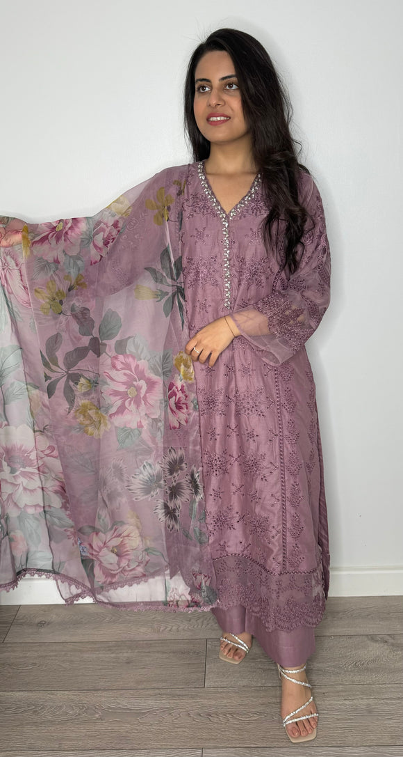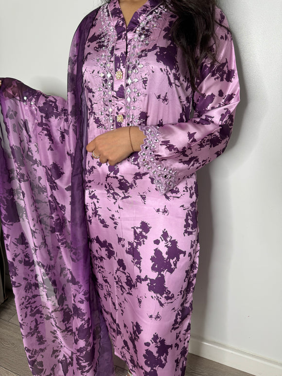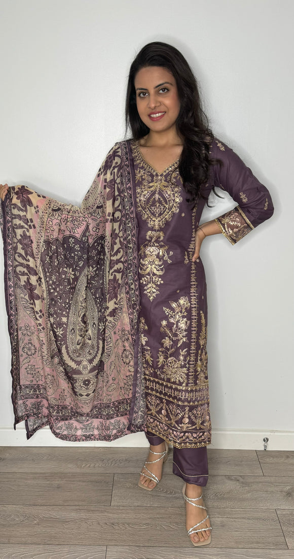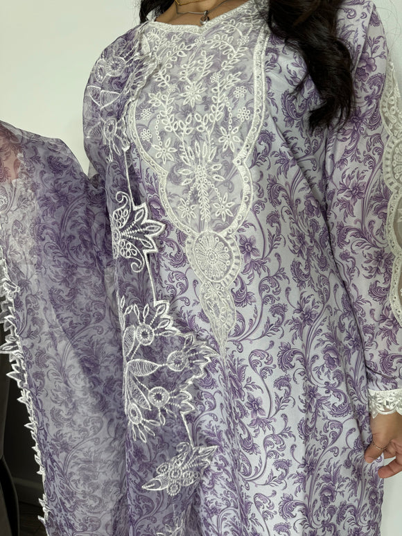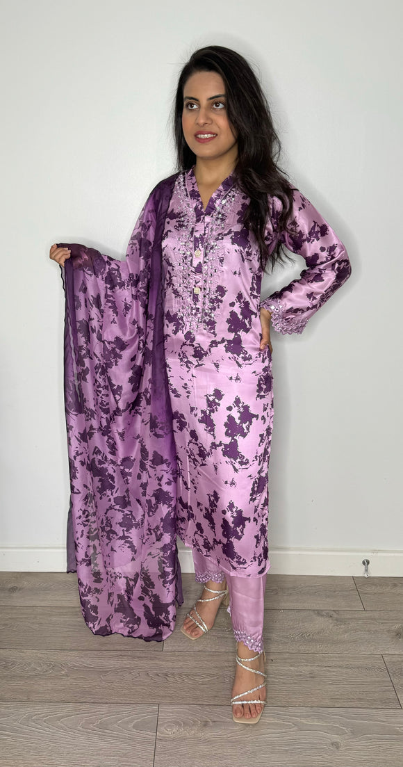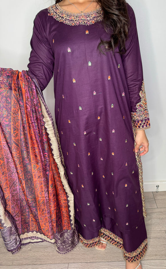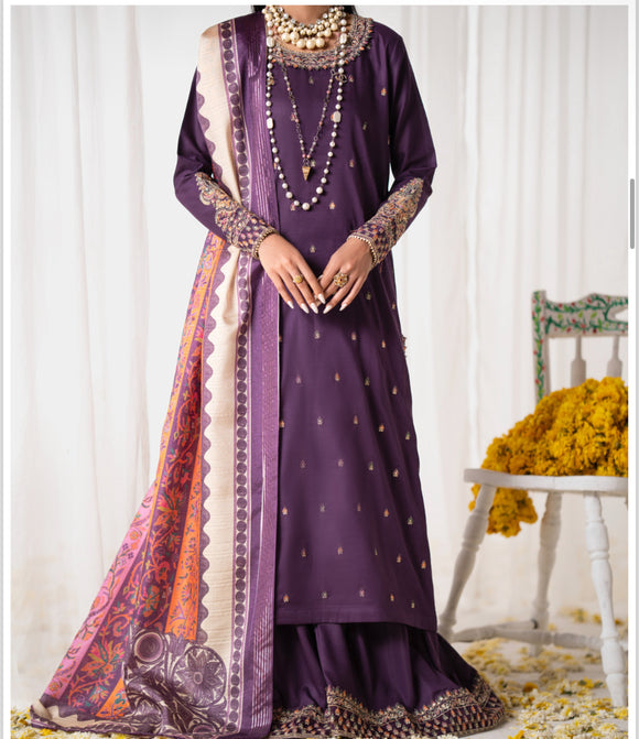 Faryal 3 Pc Silk Pret Collection Suit - Purple