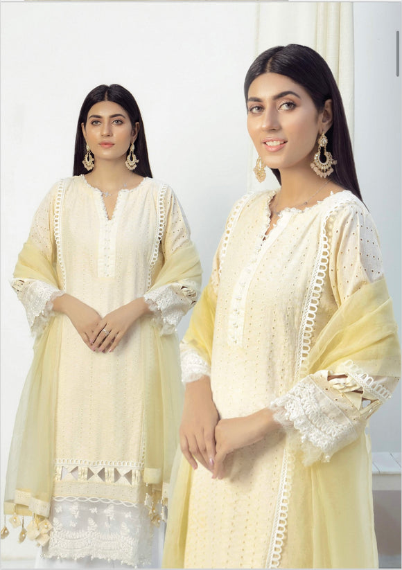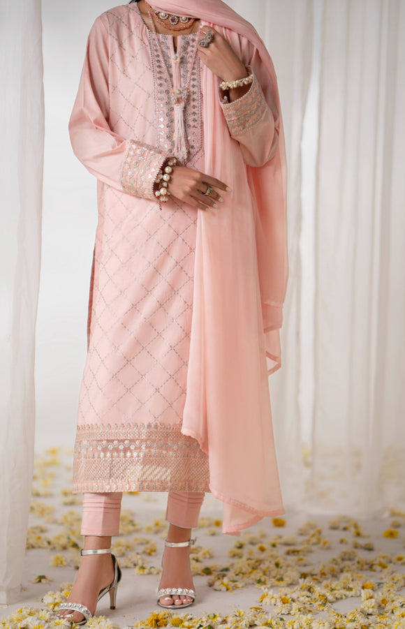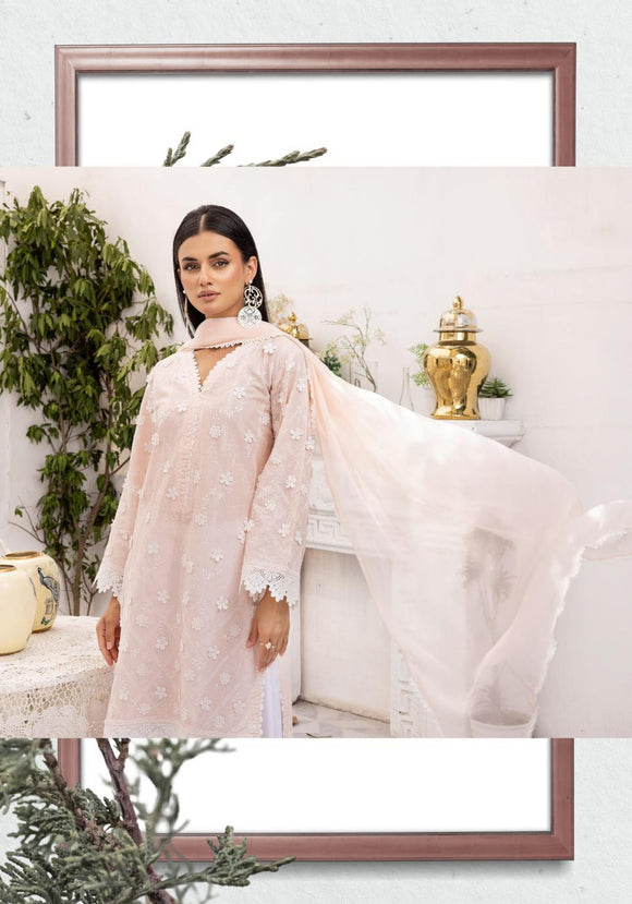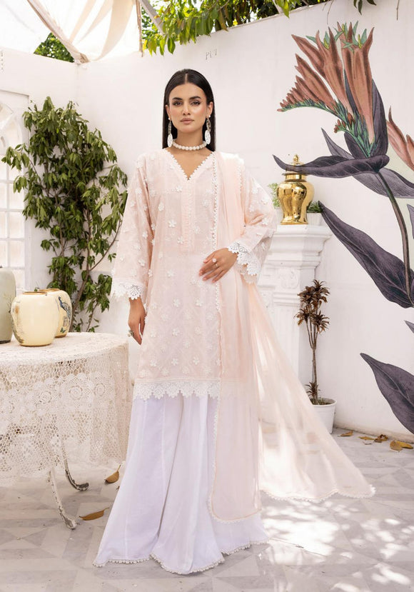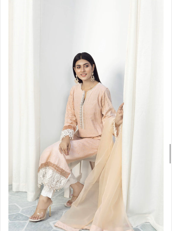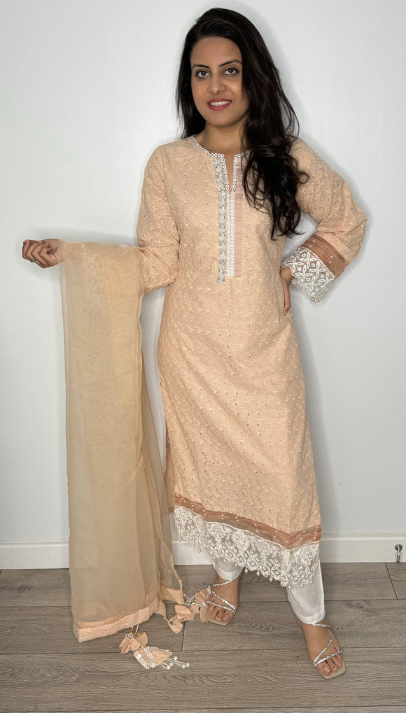 3 Pc Chickan Kari Summer Collection - Light Peach
