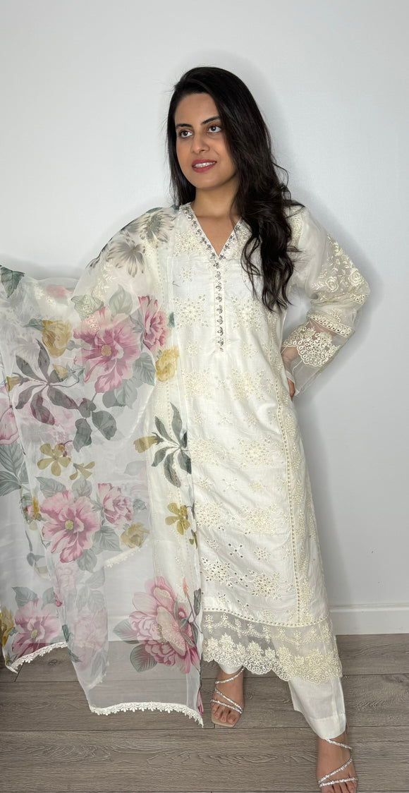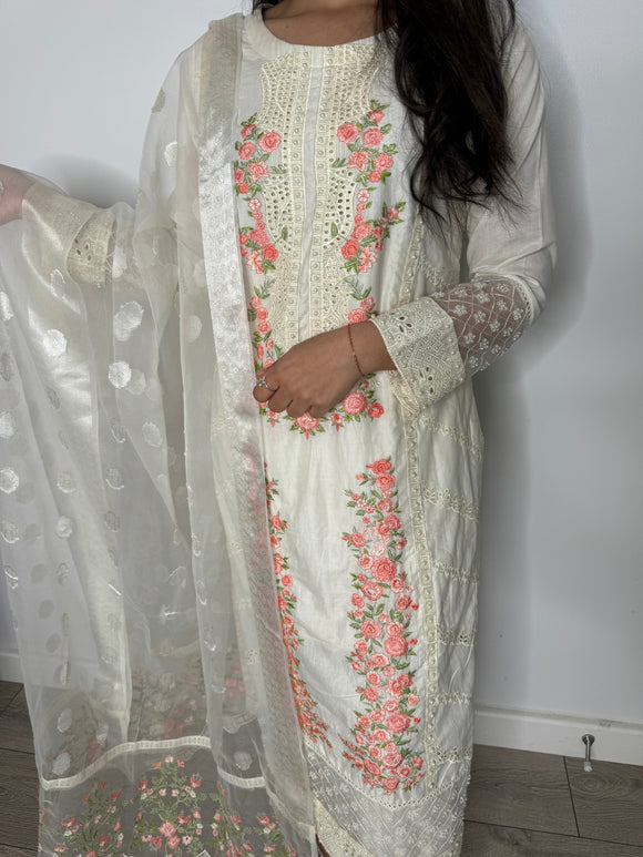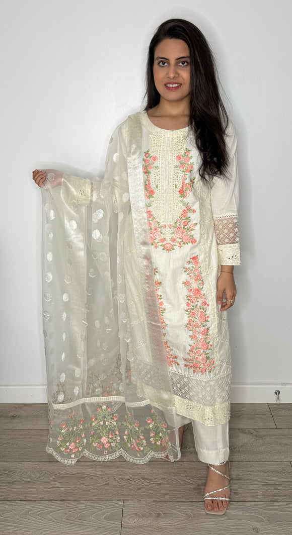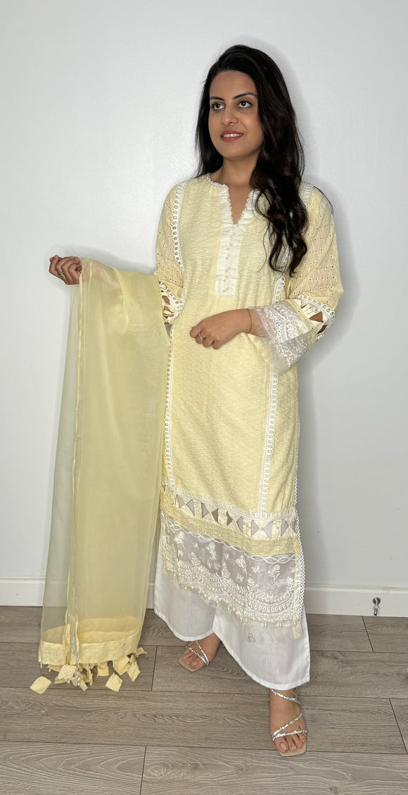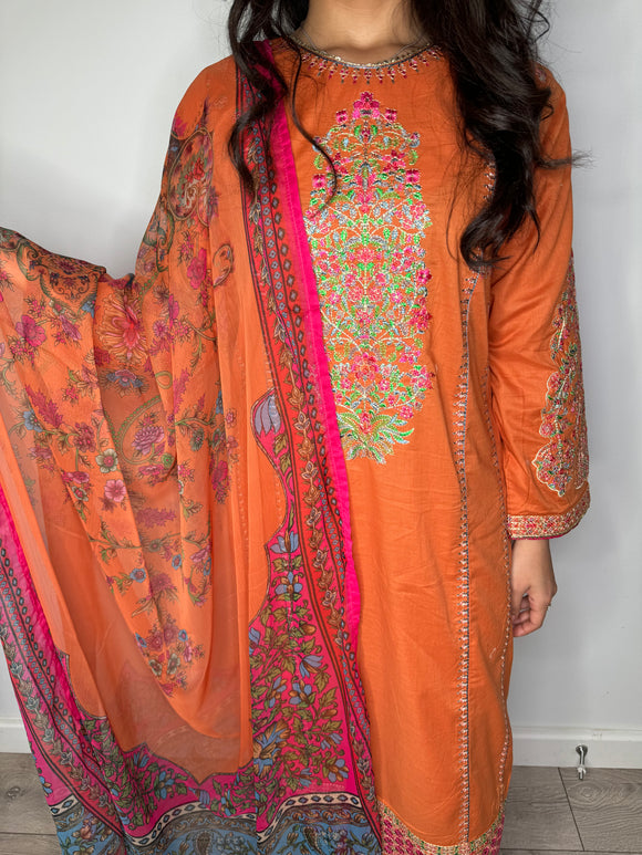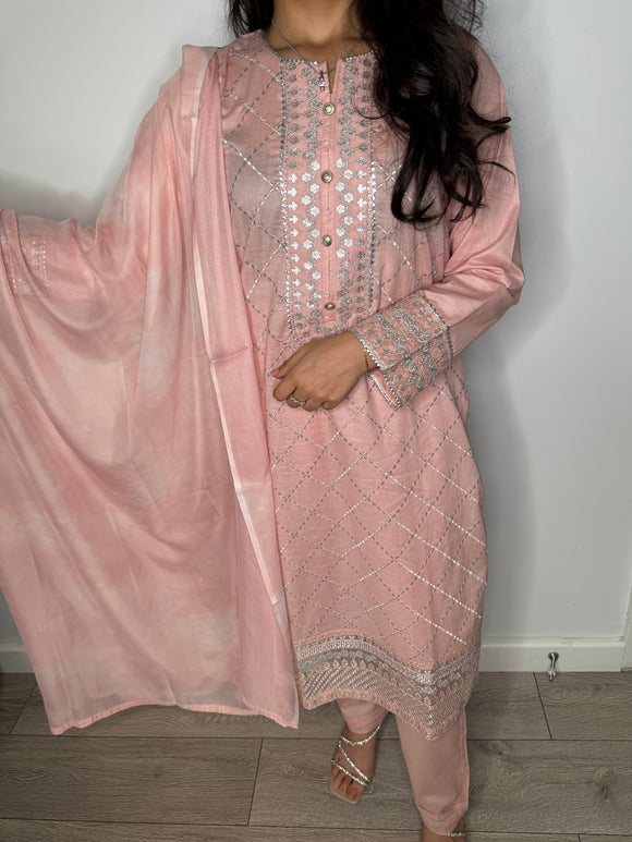 3 Pc Chickan Kari Summer Collection - Light Peach