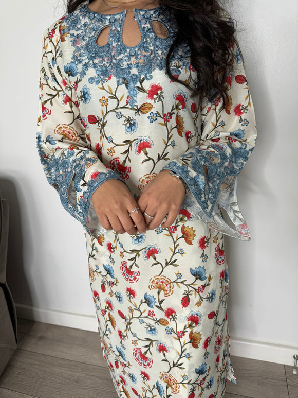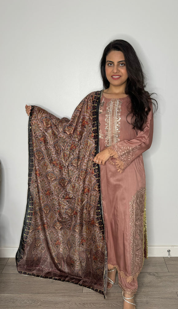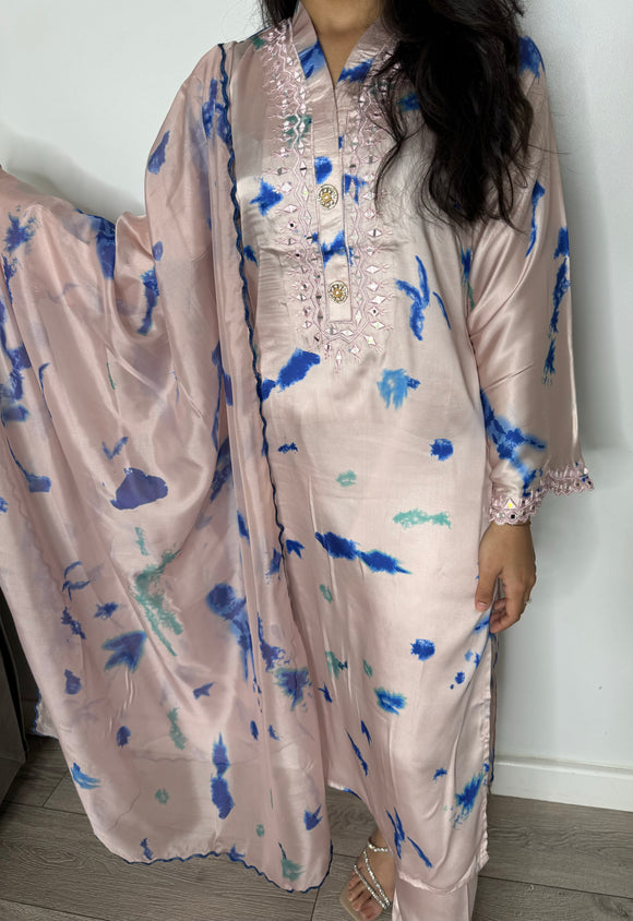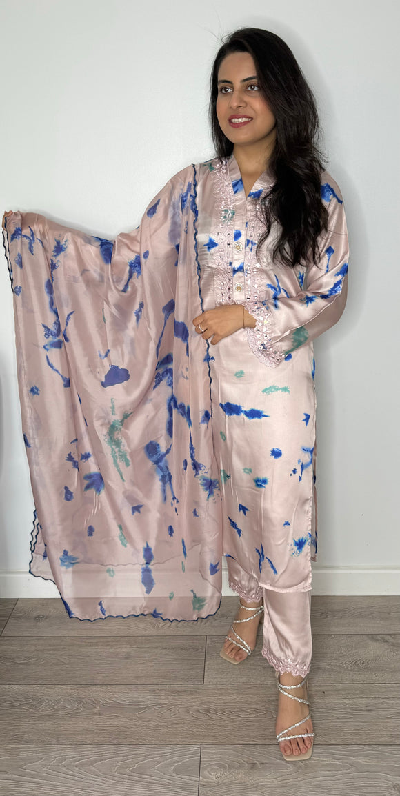 Faryal 3 Pc Silk Pret Collection Suit - Nude and Blue