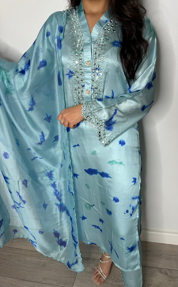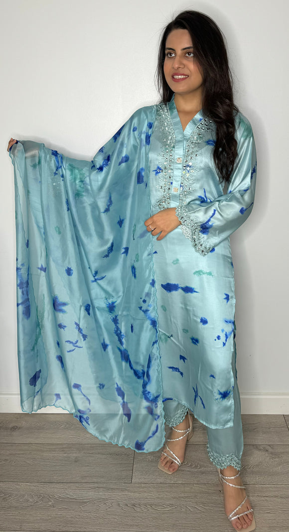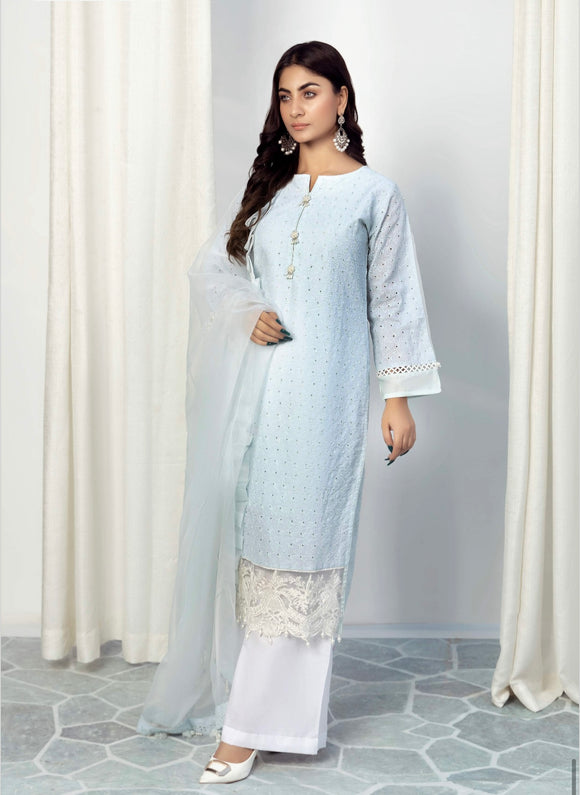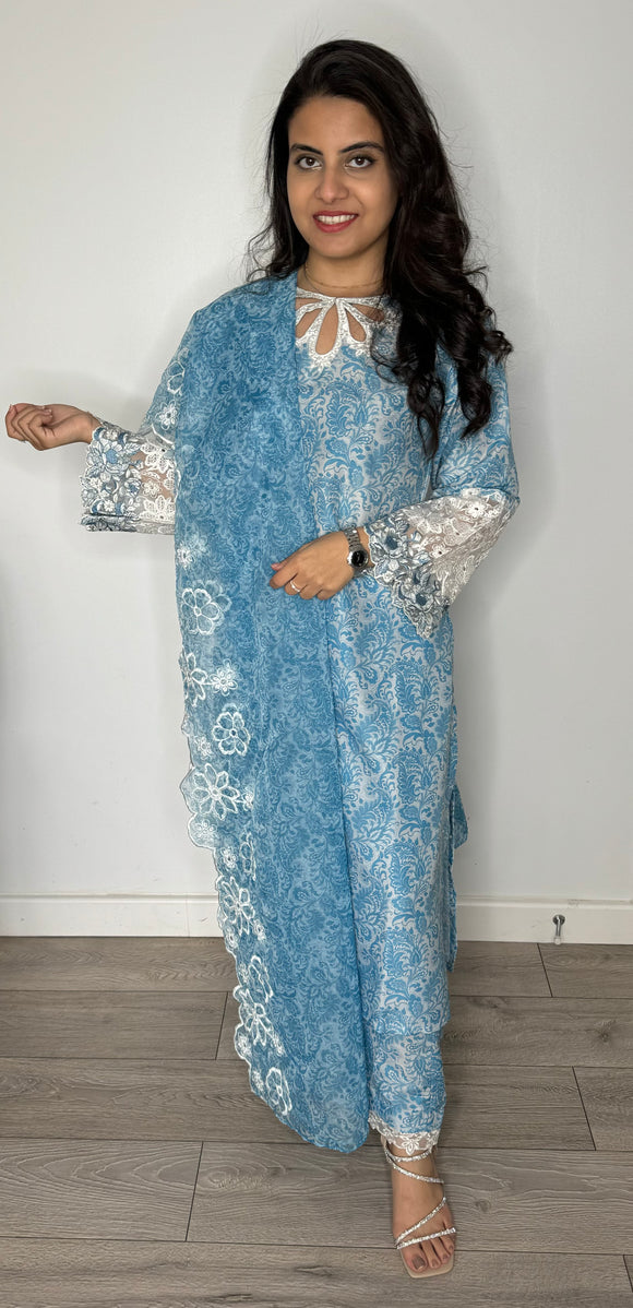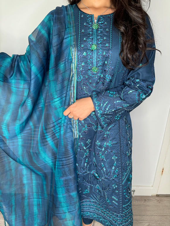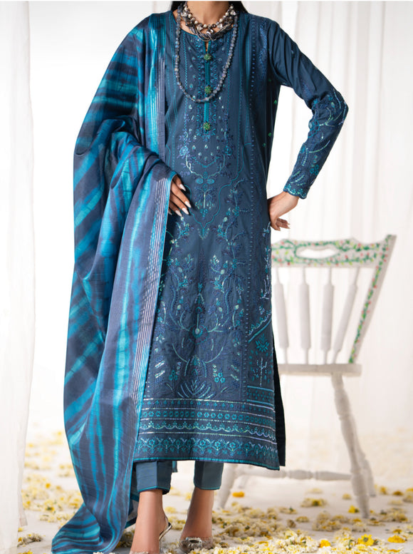 Faryal 3 Pc Silk Pret Collection Suit - Blue