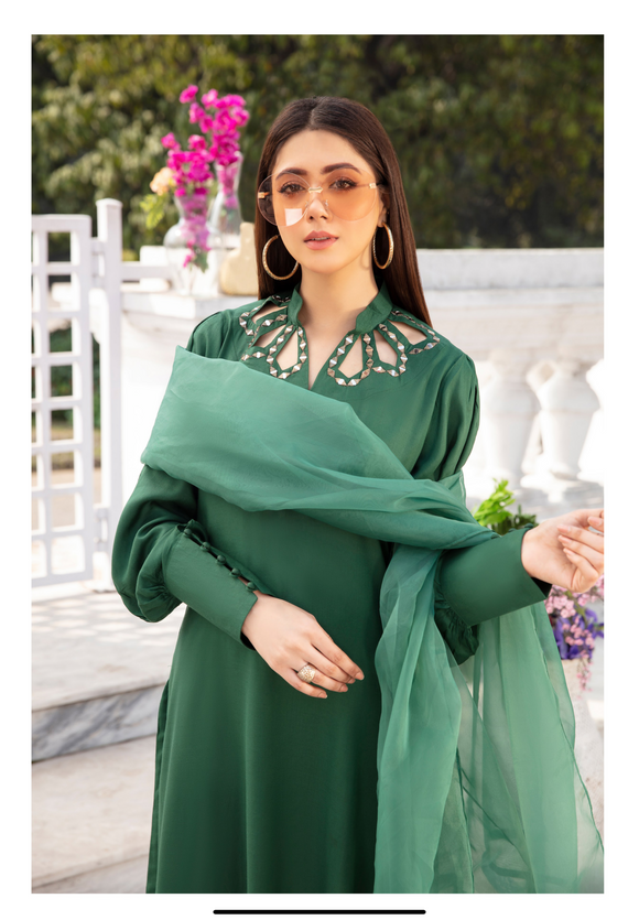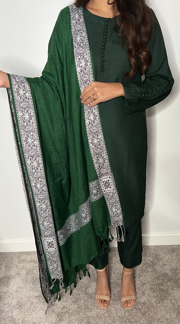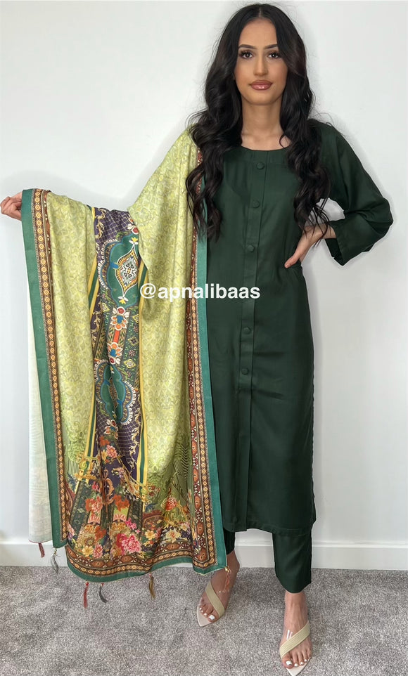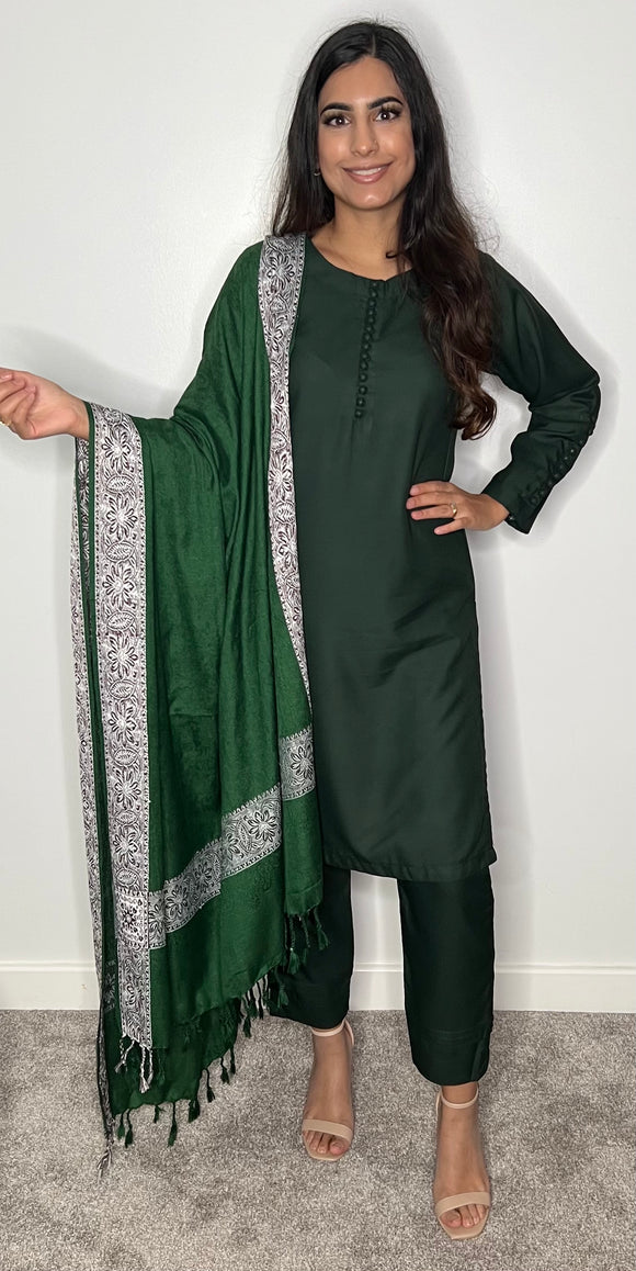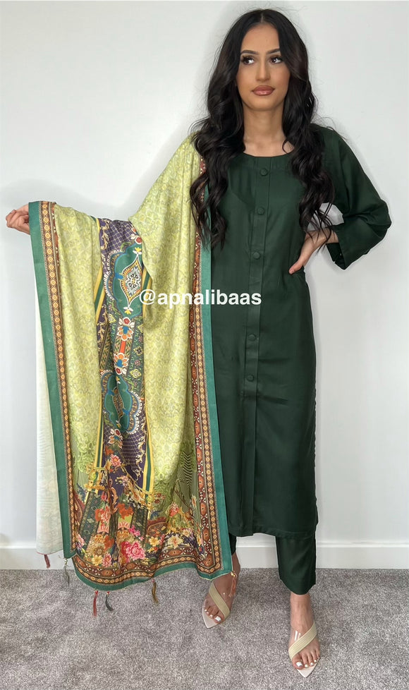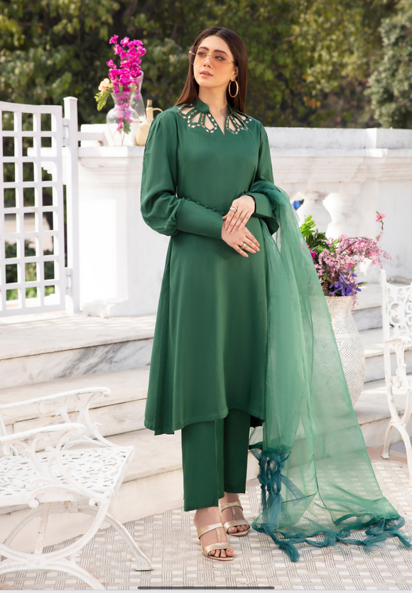 'Haniya' 3 Pc Suit - Bottle Green - Apna Libaas Original