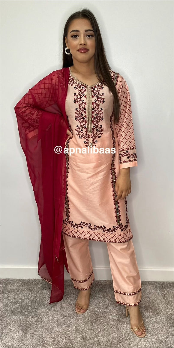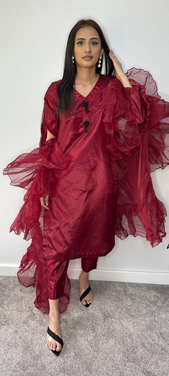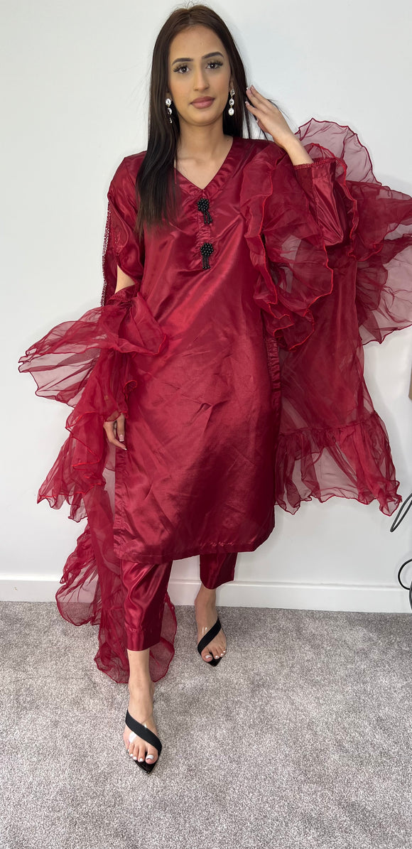 'Nakhra' - 3 Pc Suit - Maroon (Damaged please read)