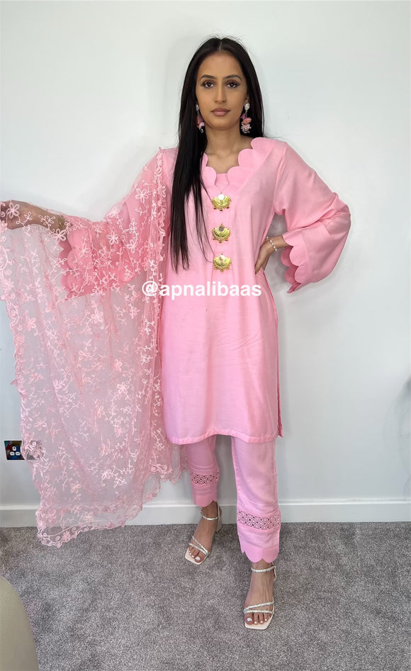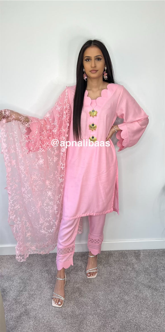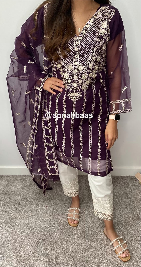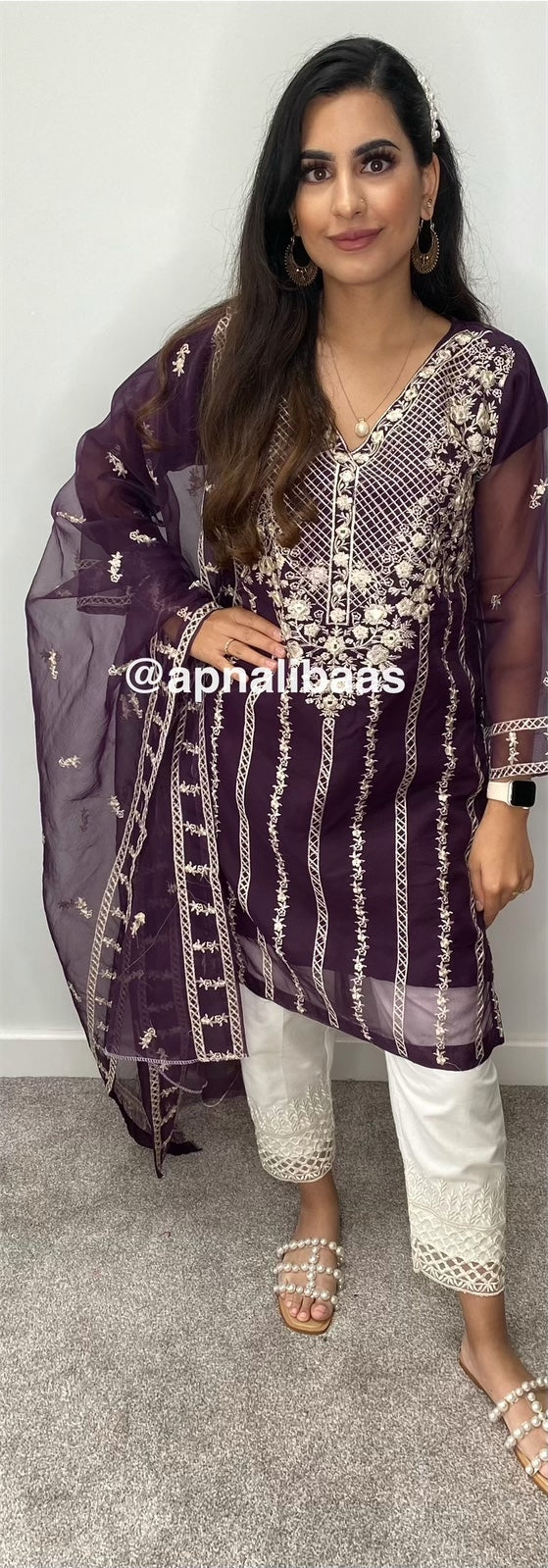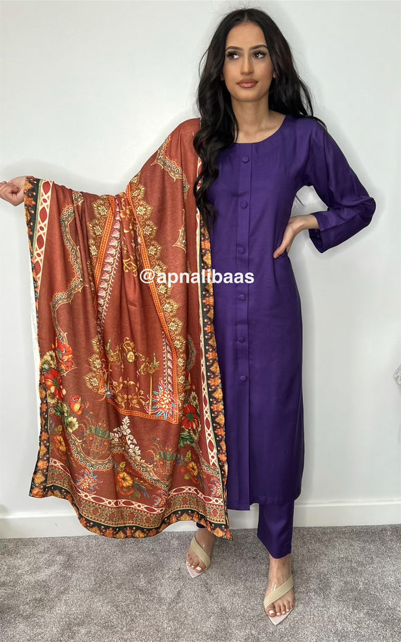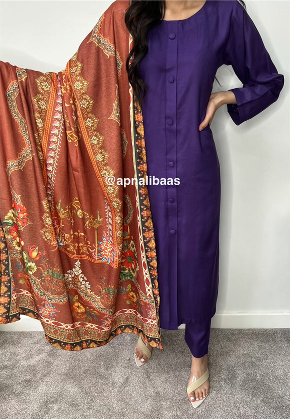 'Haniya' 3 Pc Suit - Purple - Apna Libaas Original