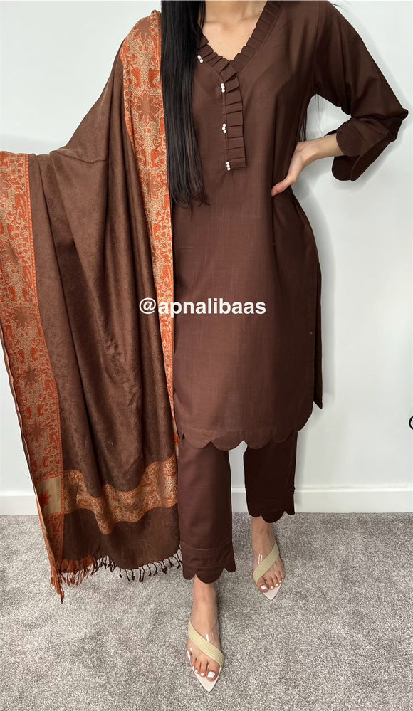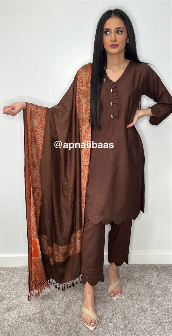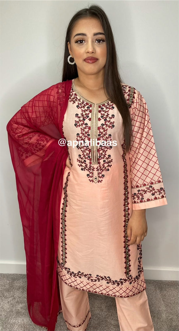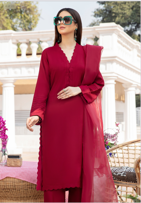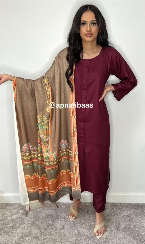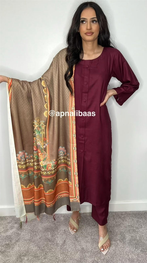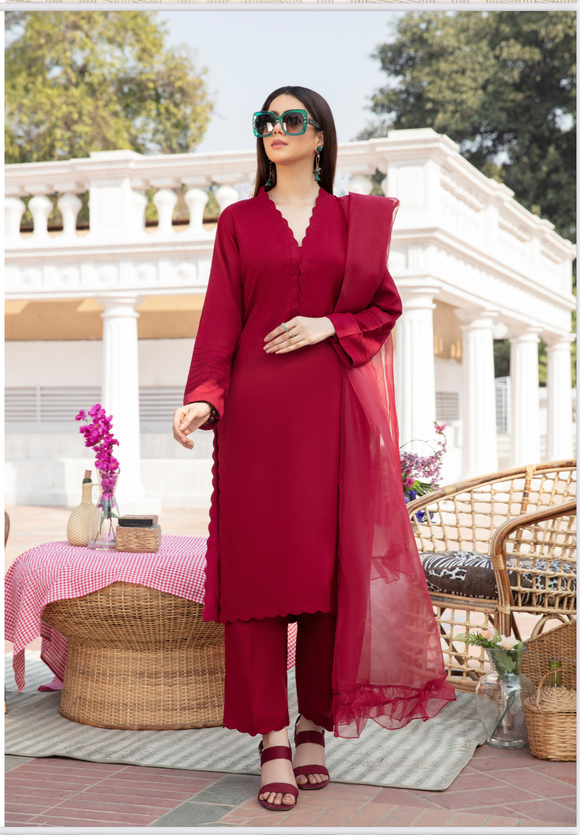 'Haniya' 3 Pc Suit - Maroon - Apna Libaas Original
