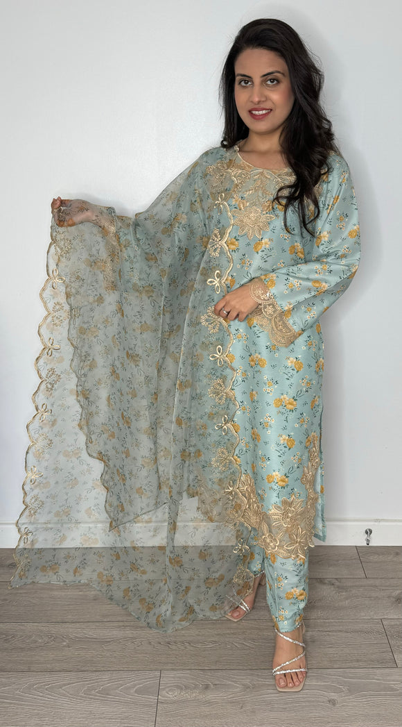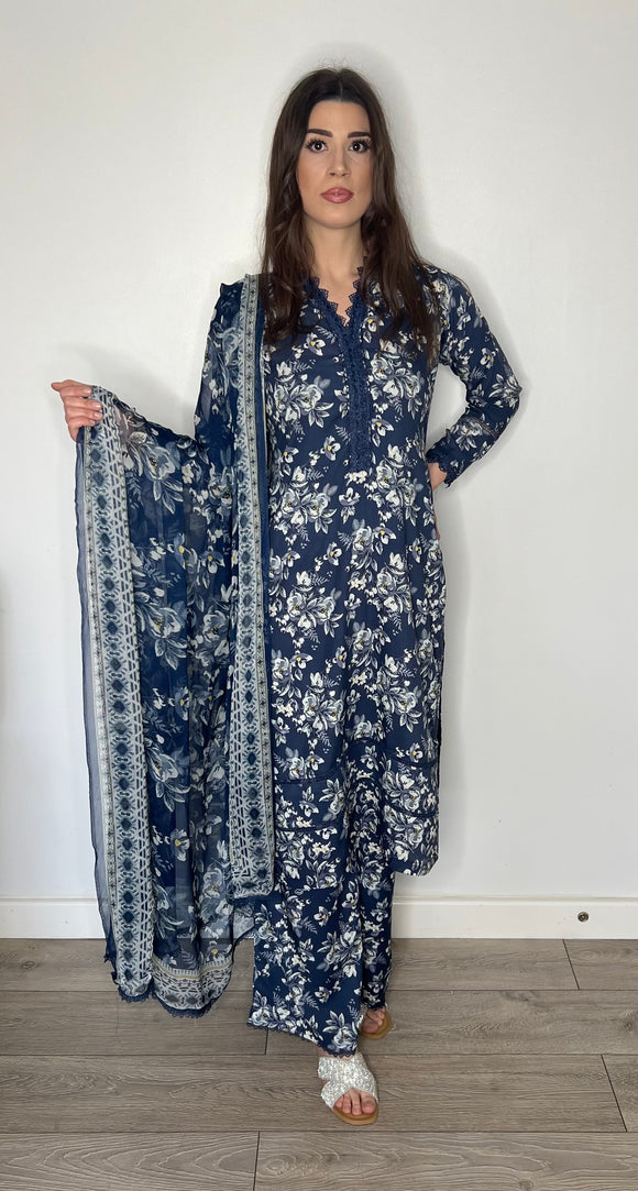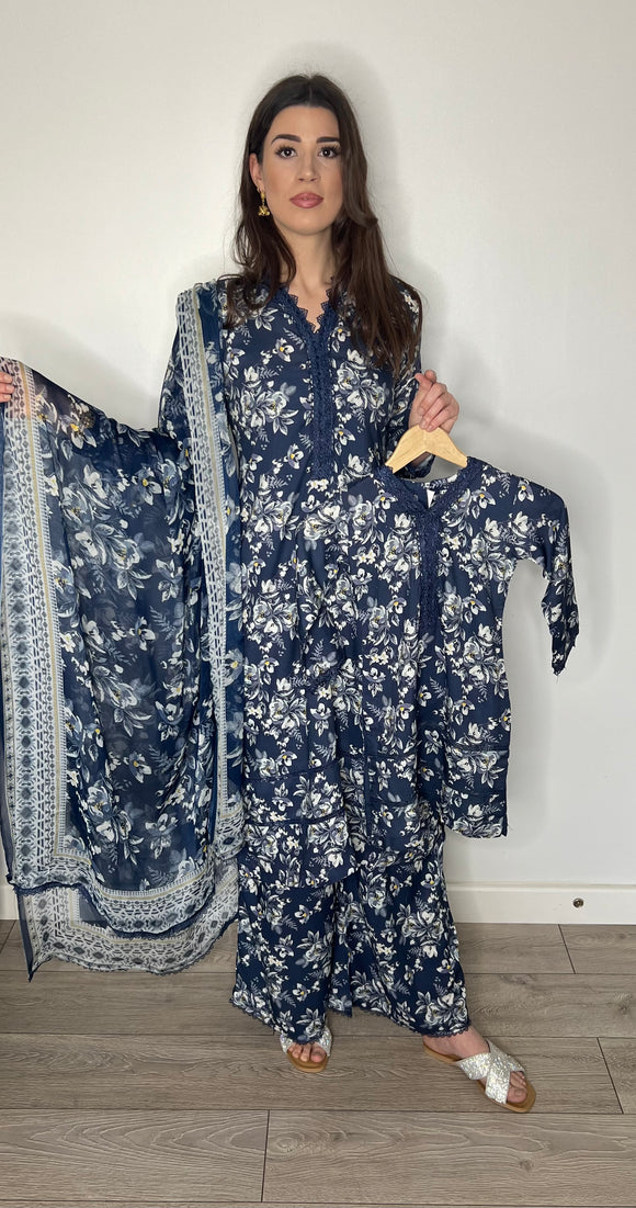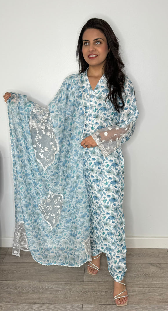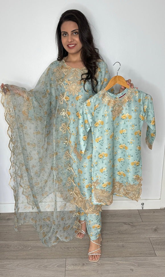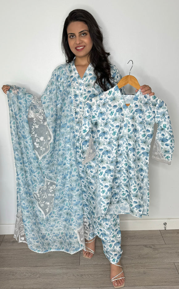 Gulaab Mother and Daughter Collection - Blue and White Floral Print