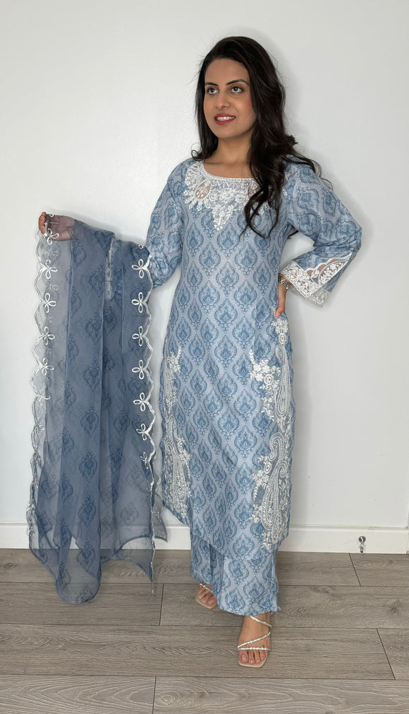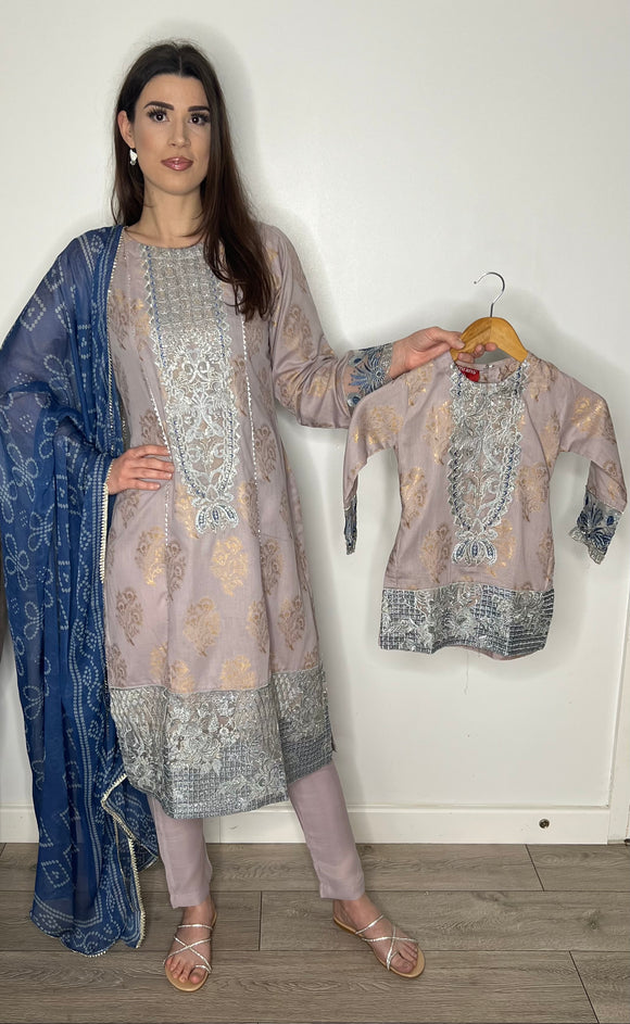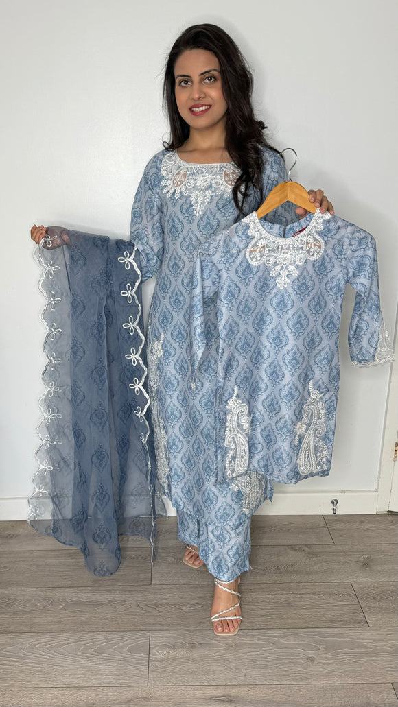 Ivaana Lux - Jacquard Mother and Daughter Collection - Grey and Blue