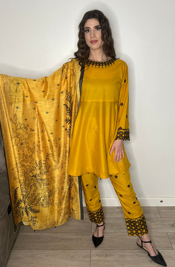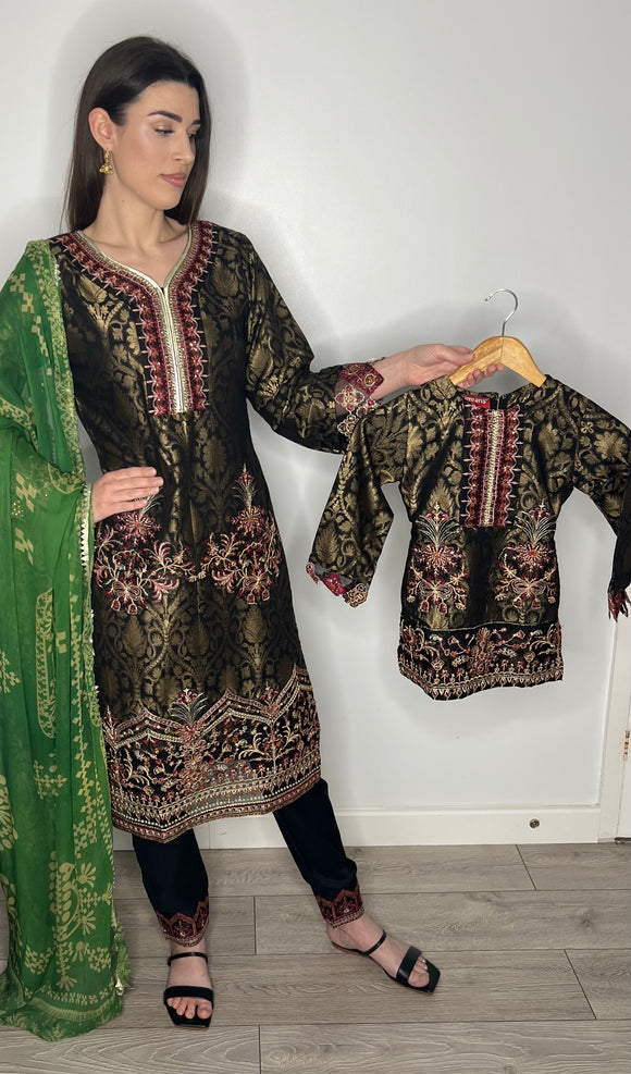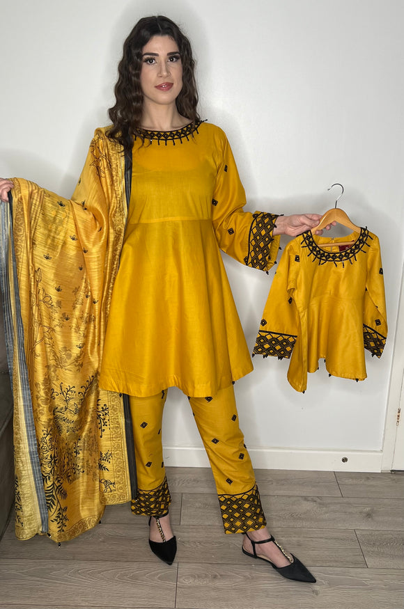 Sabeena - Mother and Daughter Collection - Mustard and Black