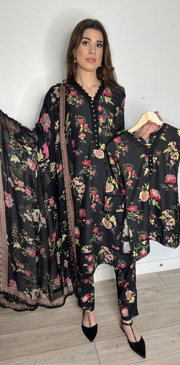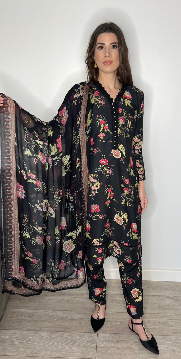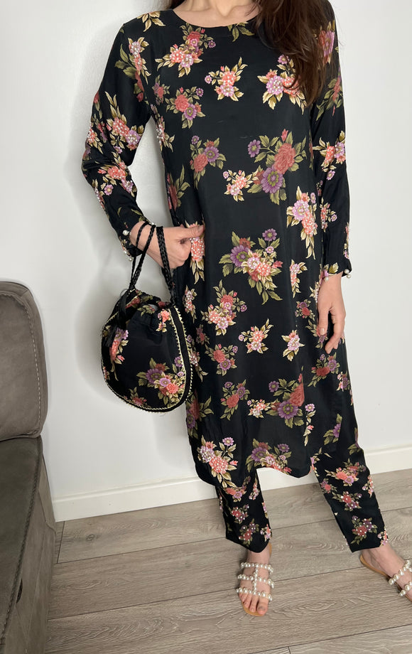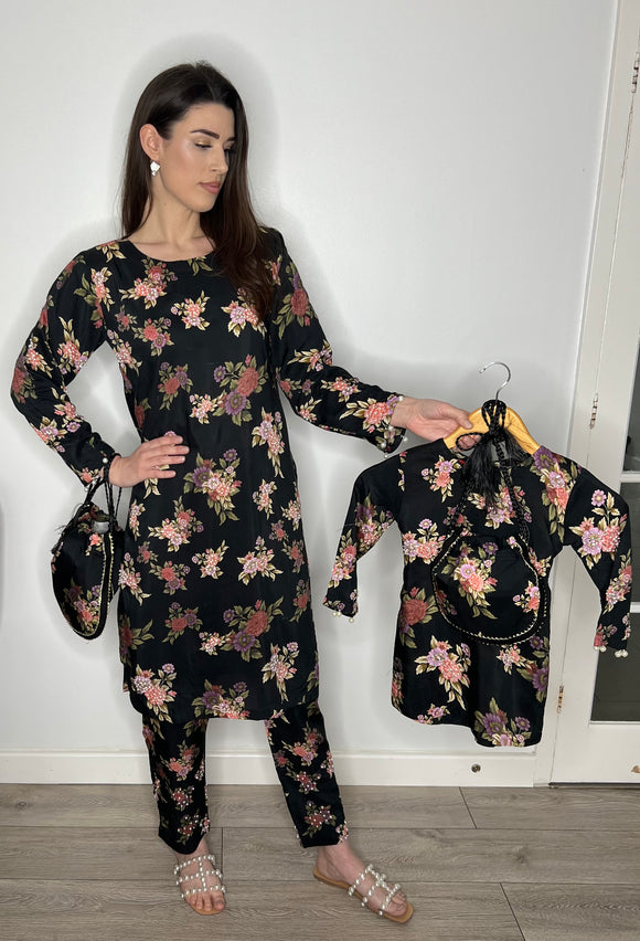 Gulaab Mother and Daughter Collection - Black Floral Print