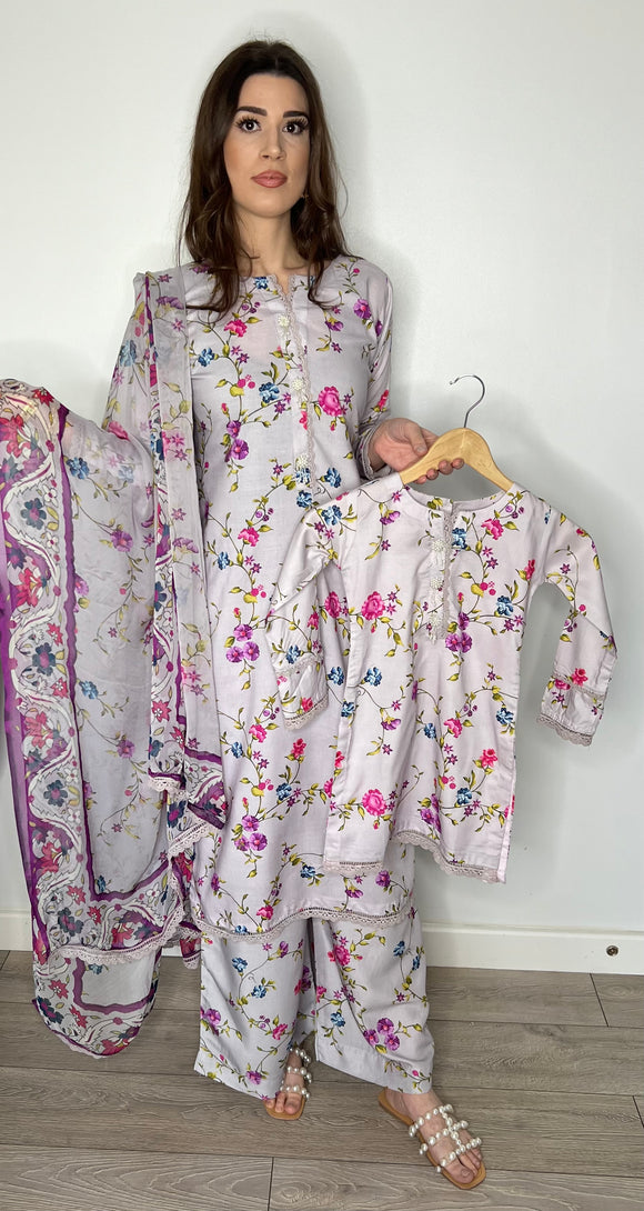 Gulaab Mother and Daughter Collection - Lilac Floral Print