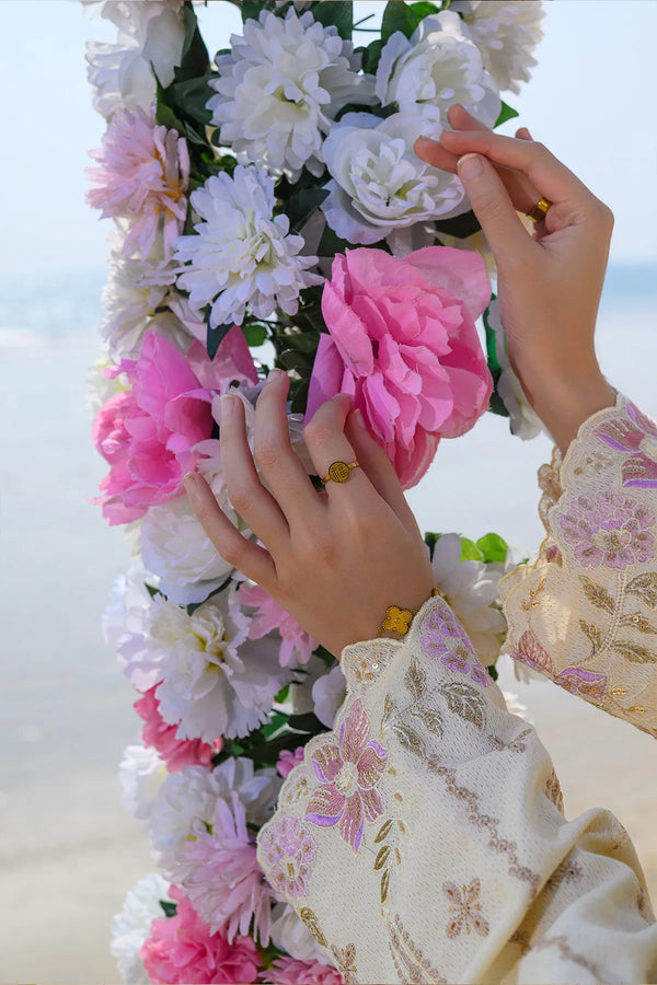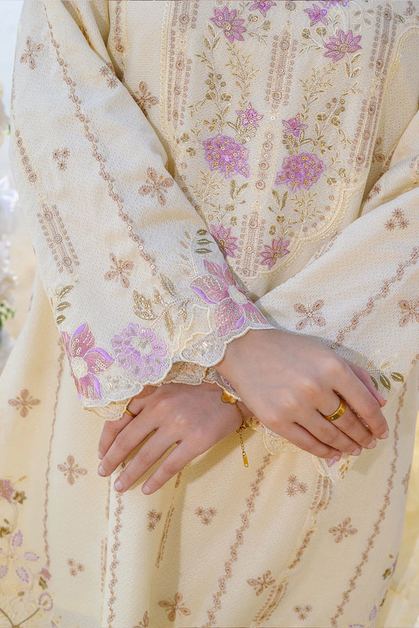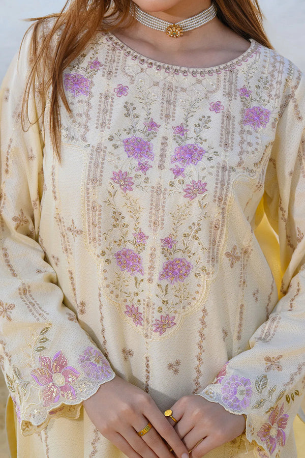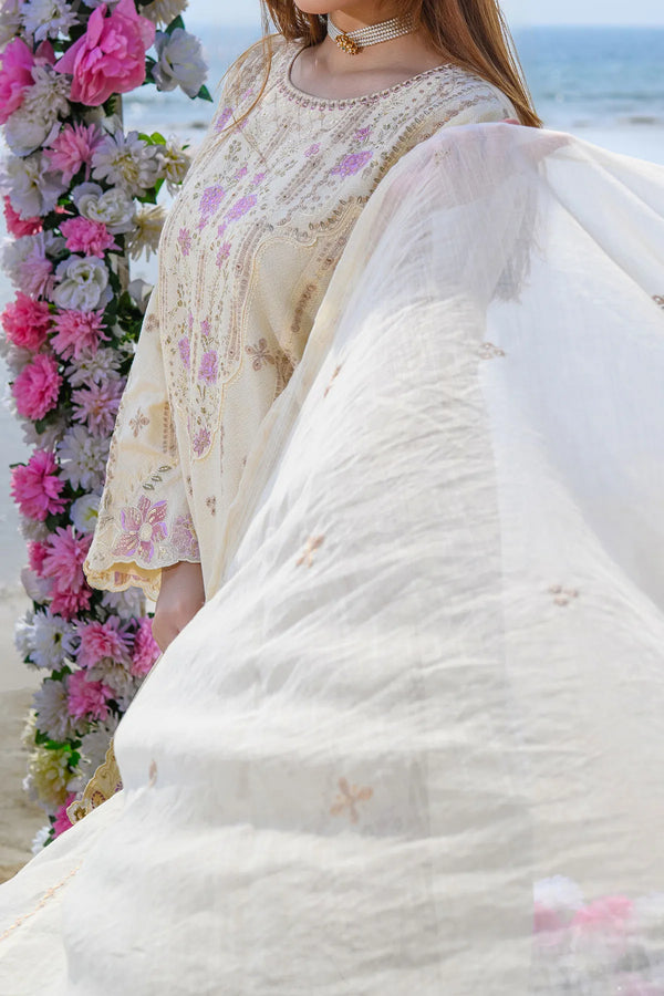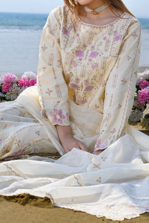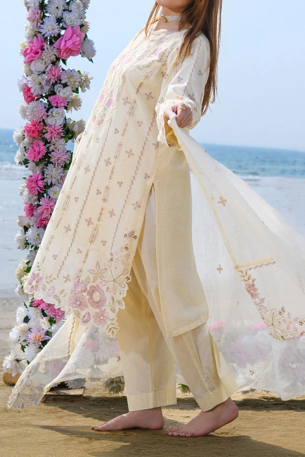 Delicately adorned with intricate ethnic embroidery, this ensemble balances heritage with contemporary sophistication. The soft, graceful silhouette lawn cotton knit paired with a slub embroidered dupatta with cutwork adds a touch of effortless charm. Light, airy, and endlessly versatile, it is designed for the modern muse who embraces tradition with a chic, understated flair.
