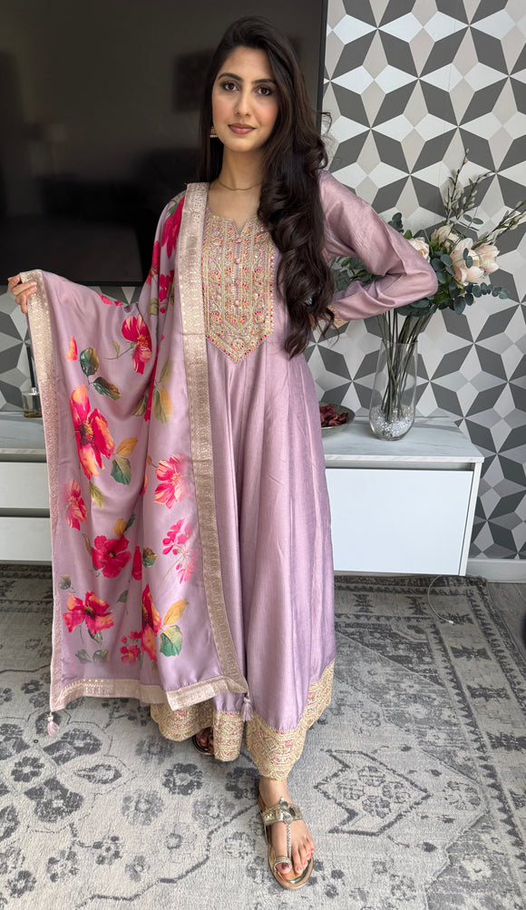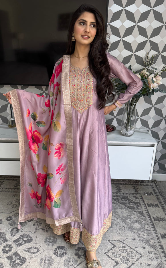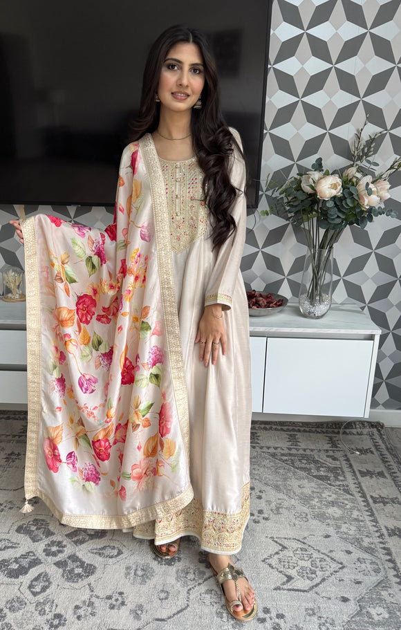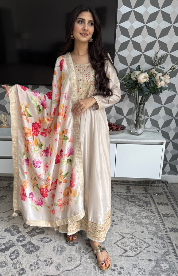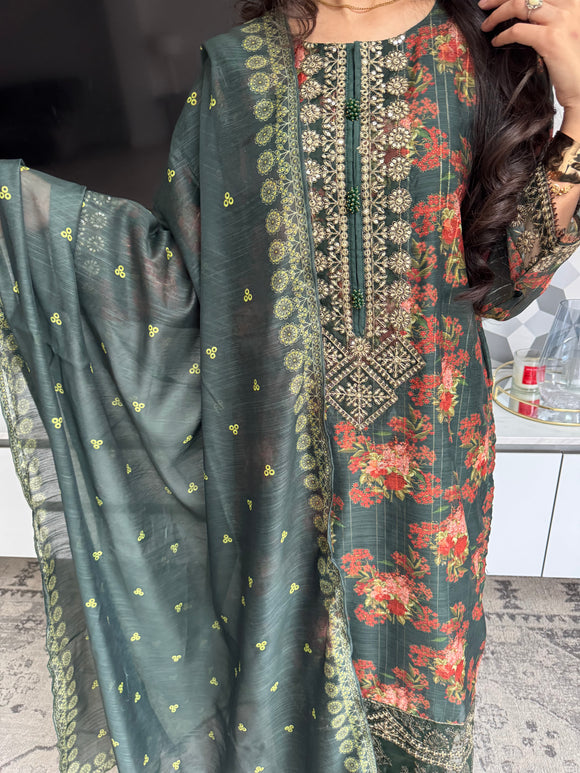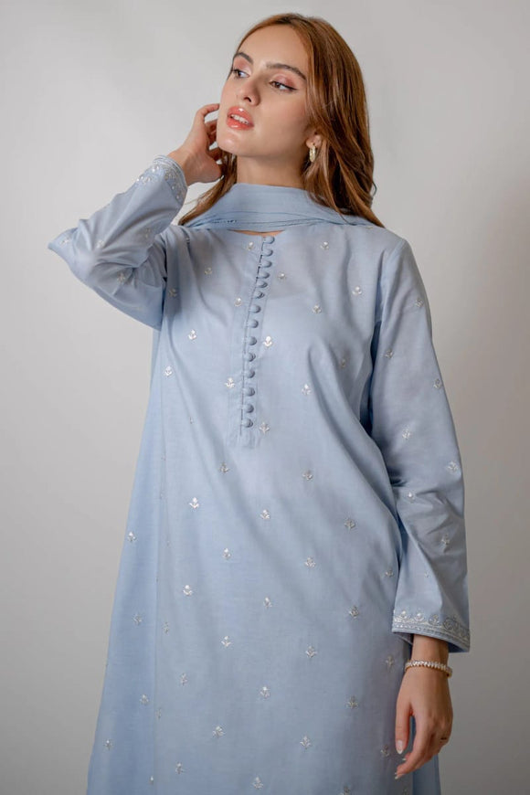 'Imaani' 3 Pc Chickan Kari with Printed Dupatta - Grey
