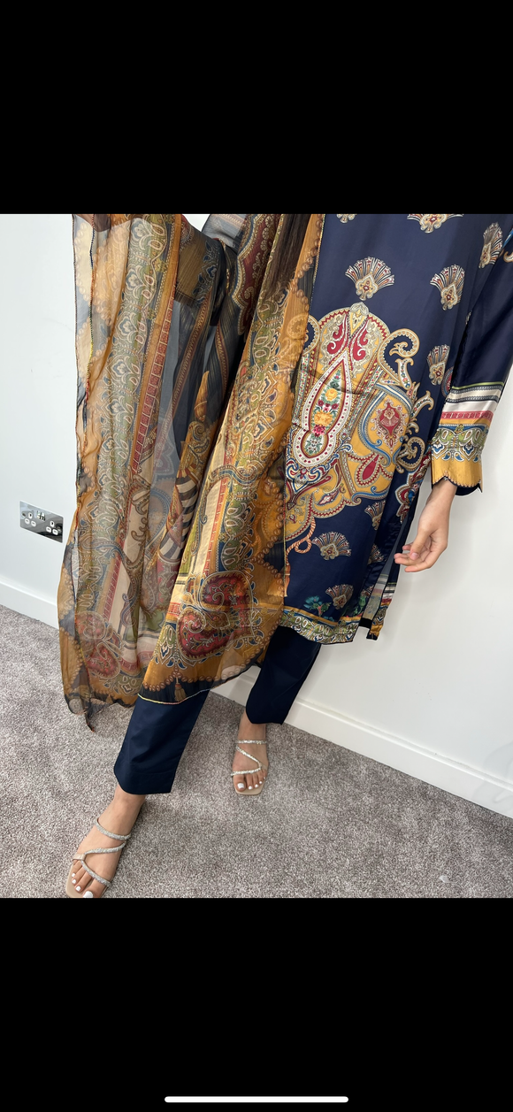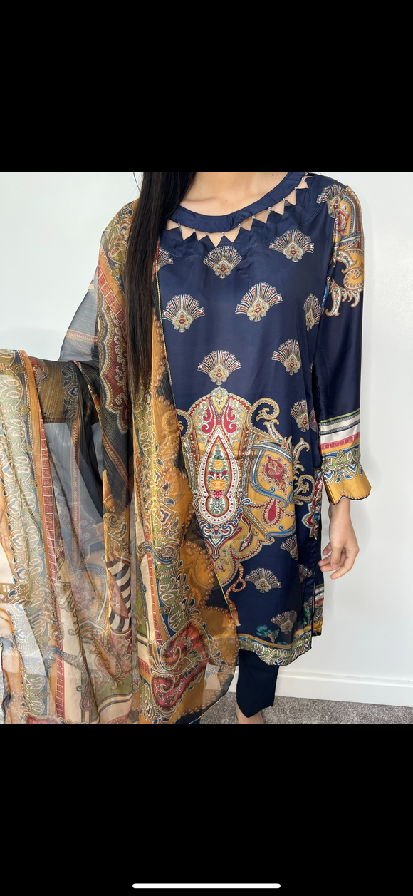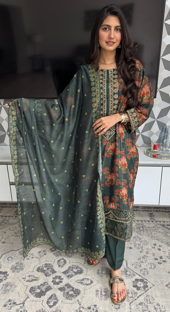 3 Pc Printed Eid Collection - Design 2 - Tan