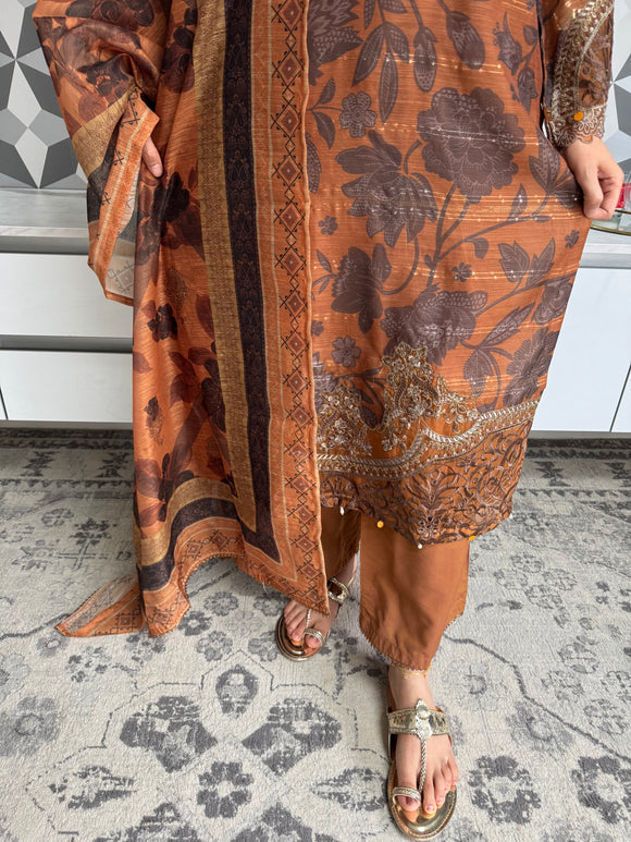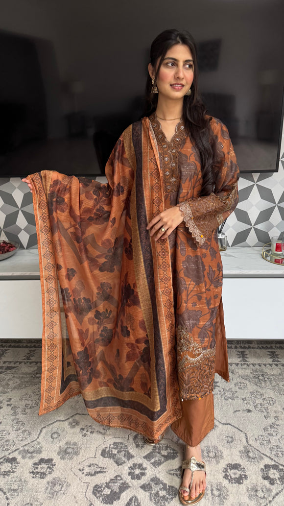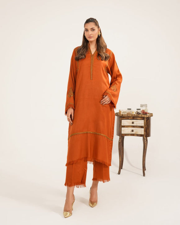 'Abeeha' 2 Pc Pret Co Ord - Burnt Orange