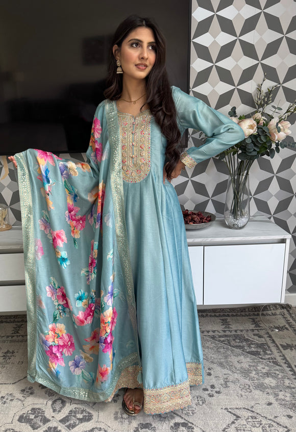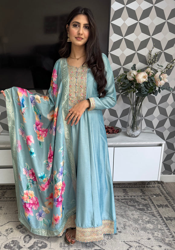 Limelight Inspired 2 Pc Blue Silk Kurta & Dupatta